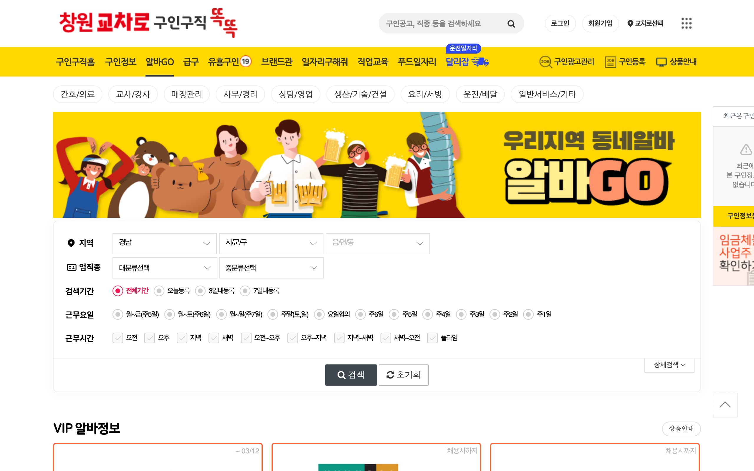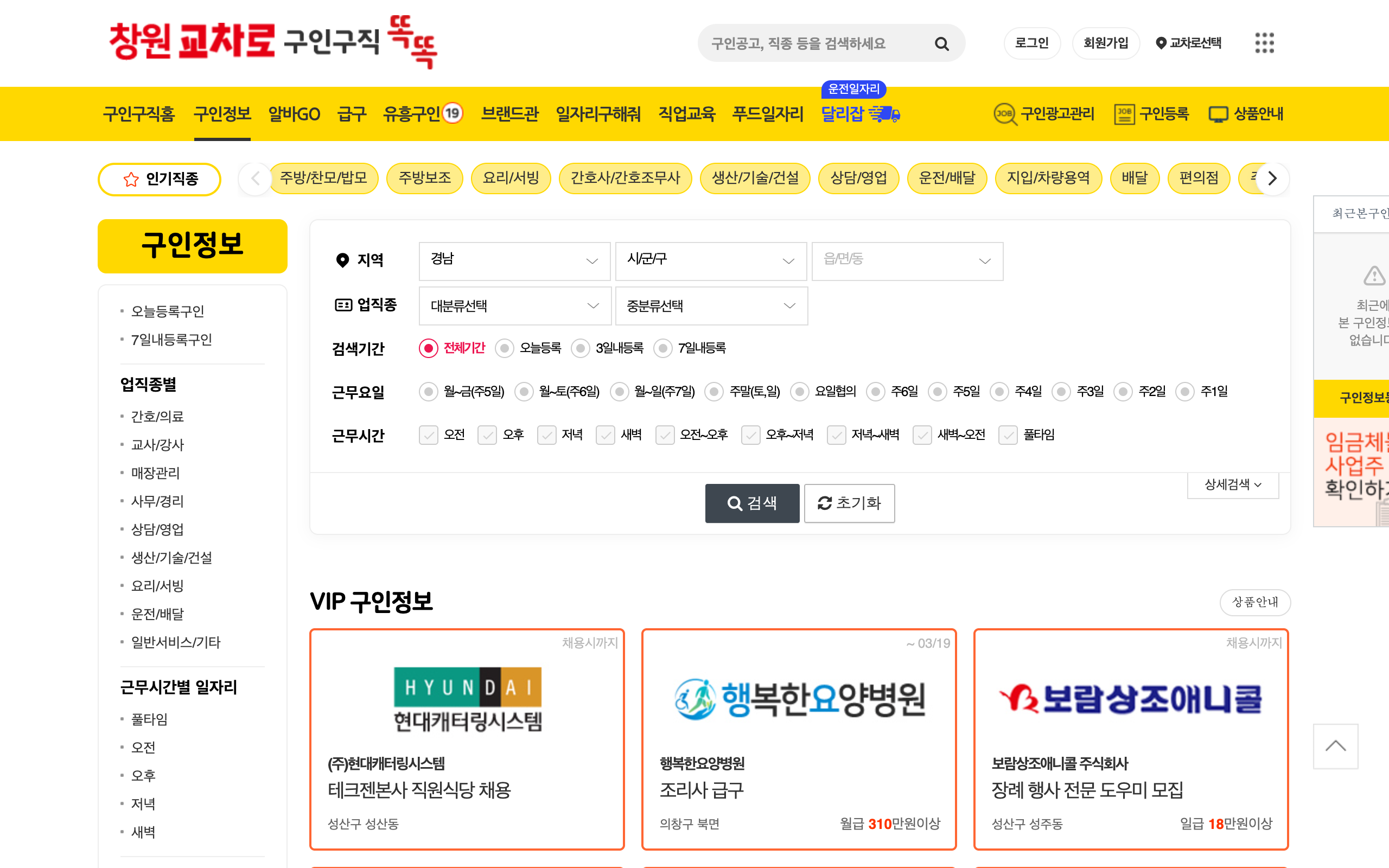 | 경비/청소 | 아파트/상가 보안, 미화 | 진해구 | 60세 이상 가능, 인근 거주자 |