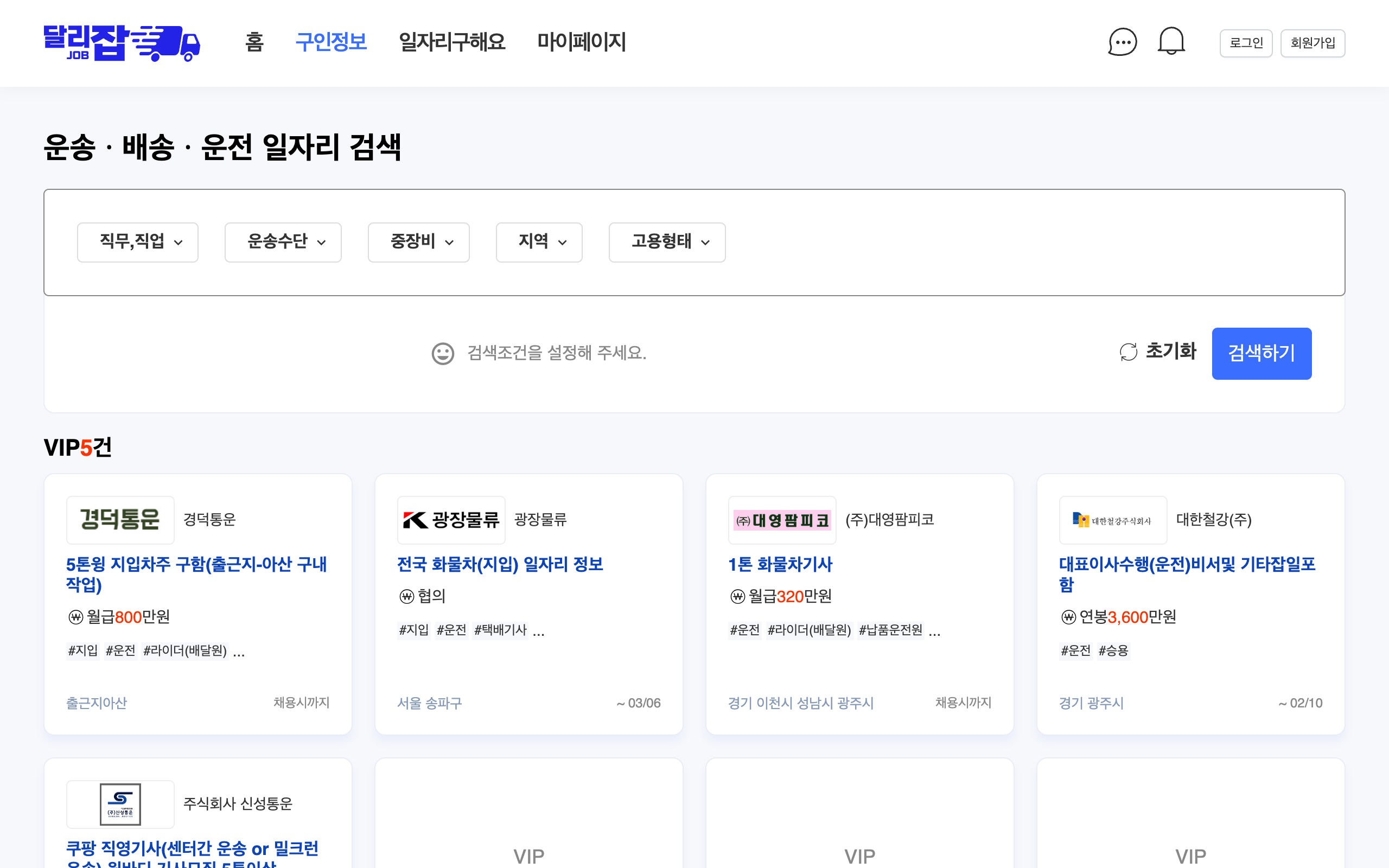 지입 차주, 법인 택시, 화물 배송 등 운전 관련 베테랑을 위한 일자리가 모여 있습니다.