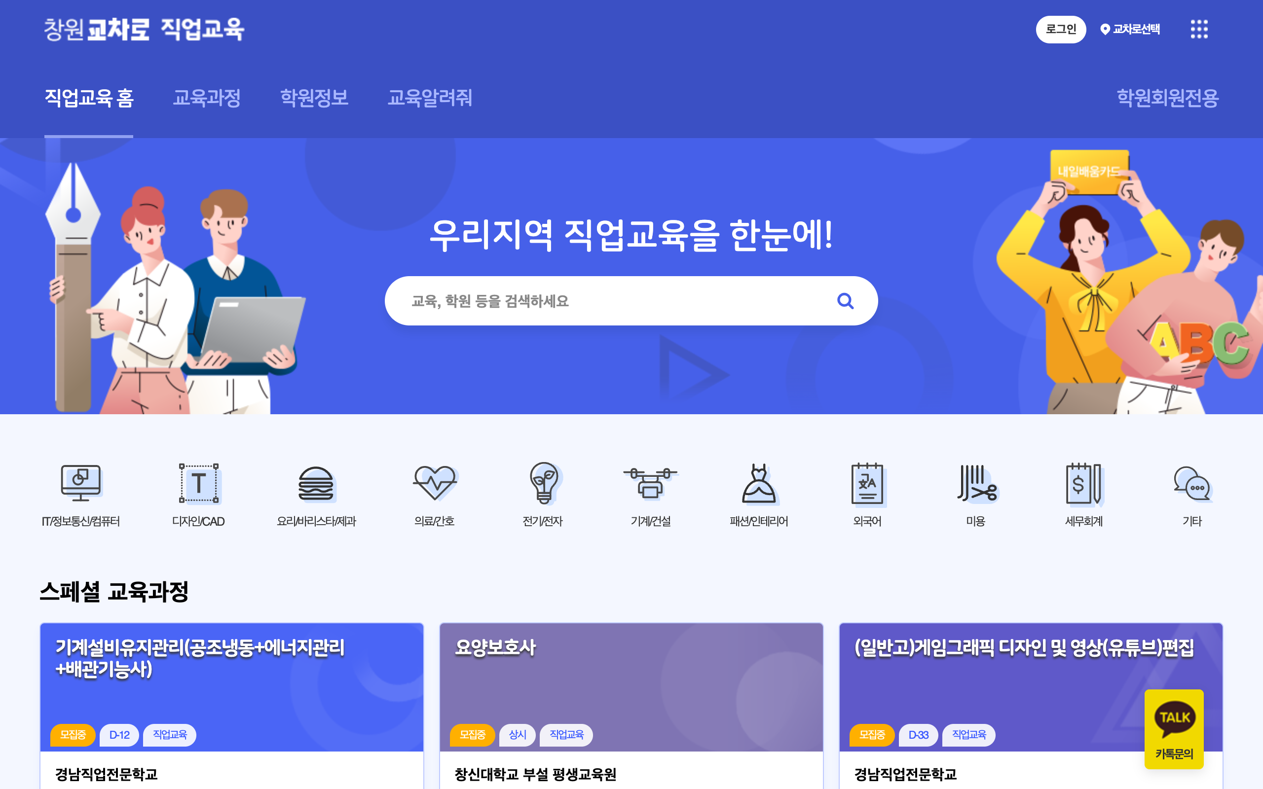 요양보호사, 중장비 운전, 조경, 바리스타 등 중장년층 재취업에 유리한 과정들이 많습니다.